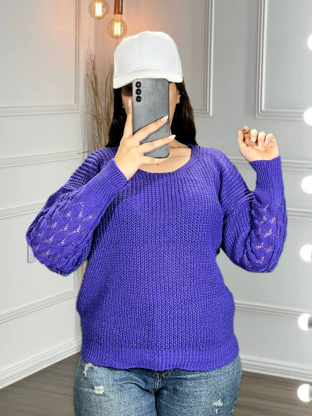 بلوز بافت آستین برگ رنگ بنفش